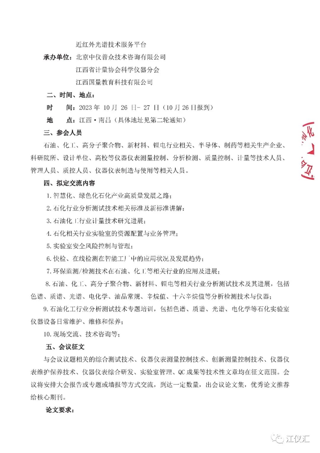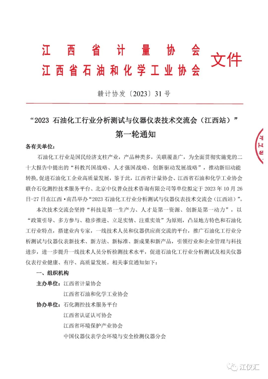 “2023 石油化工行业分析测试与仪器仪表技术交流会(江西站)”第一轮通知