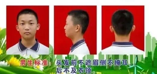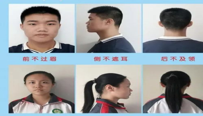 2.男生发型要求:寸发,长度不超过4cm,前不及眉,旁不遮耳,不剃光头。