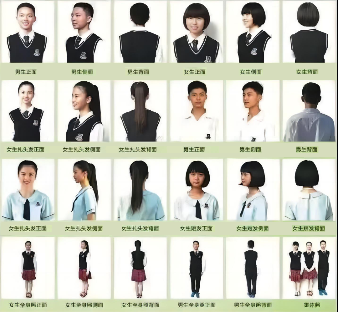 3.女生发型要求:运动短发或扎马尾辫,留长发学生要求前不及眉,后不过肩,不能披头散发,建议留齐耳短发便于梳洗。