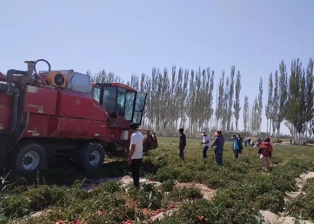 “一台番茄采收机一天能采收80亩到150亩番茄,效率是50名人工采收的4倍,每亩地节约成本500元左右。通过机械收获番茄,大大减少了人力、时间成本,实现了效益最大化。” 三道沟镇北滩村党总支书记景兆明说。
