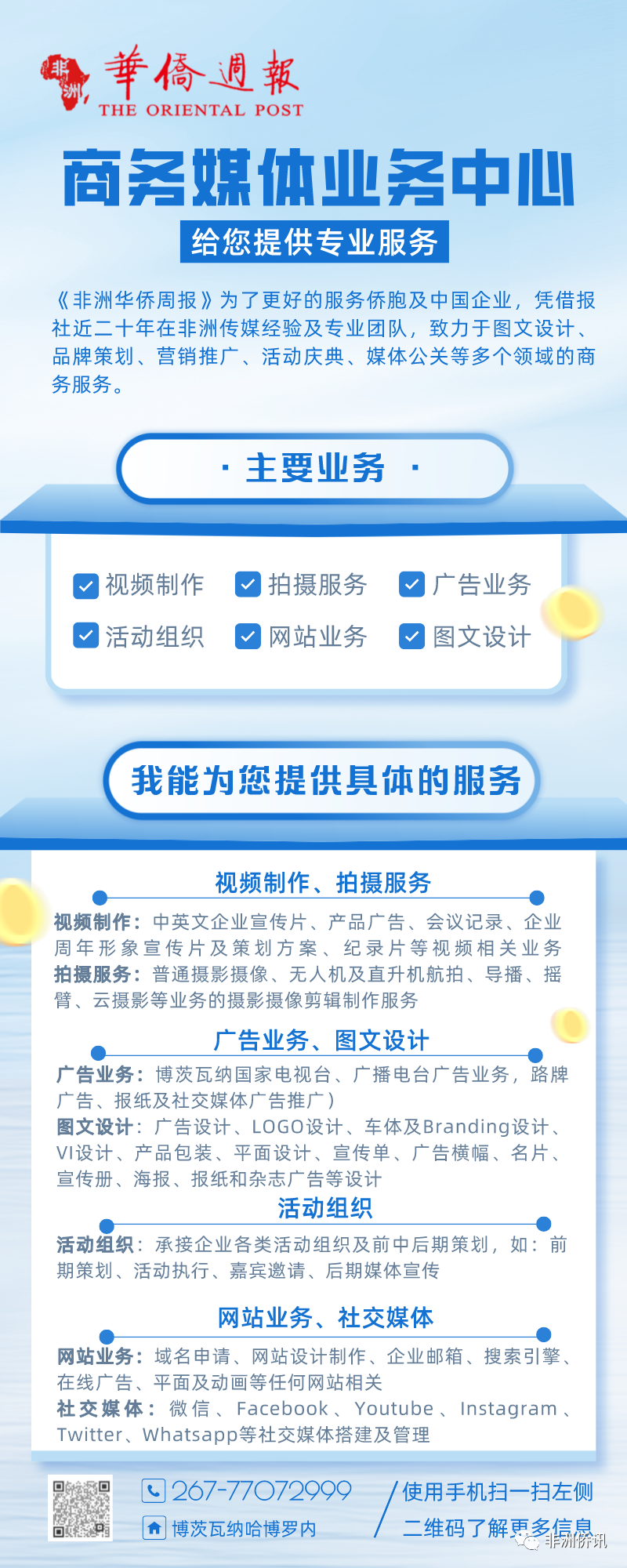 感谢读者朋友们对《非洲华侨周报》的支持,欢迎留言互动,小编在后台扶你上墙哦~,热烈欢迎各位读者朋友投稿,讲出你的非洲故事。
