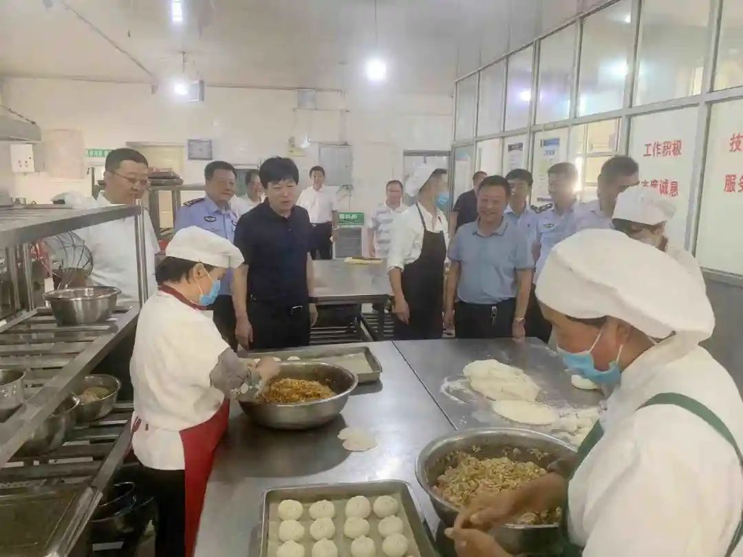 8月30日,县委书记叶盛强督导检查食品安全“两个责任”落实及秋季开学食品安全工作。副县长赵晓冬,县教体局、县公安局、县市场监管局负责同志陪同。