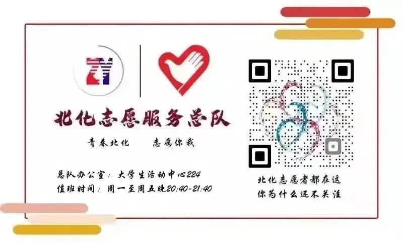 我们的口号是“青春北化,志愿你我”,代表着北化人积极向上、热心奉献的精神和态度。