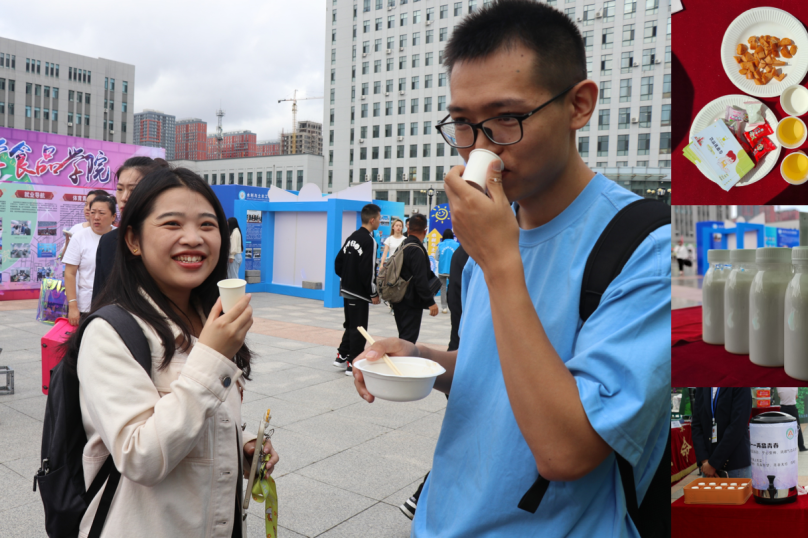 此外,学院还在两个迎新会场为新生和家长准备了酸奶、冷泡茶和香肠等特色产品,在提升新生“参与感”的同时,让新生直观感受到食品科学的魅力。