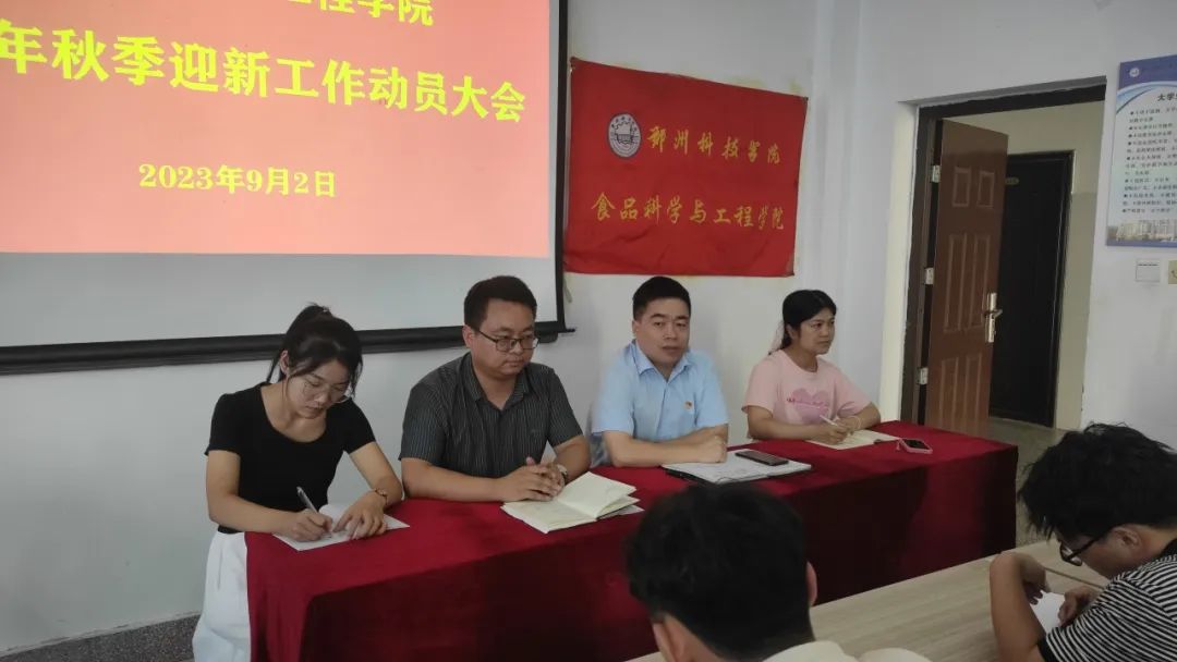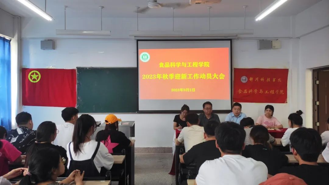 9月2日下午,食品科学与工程学院组织召开2023级秋季迎新工作动员大会,学院党委副书记孔坡、学工办副主任李刚、新生辅导员、学生干部参加会议。会上,学工办副主任对迎新工作、报到流程、党员志愿者分工等工作进行安排部署。孔书记对迎新工作进行强调,要求全体人员高度重视,精心准备,按照“热情、周到、精细、安全”的原则,全力以赴做好迎新工作。