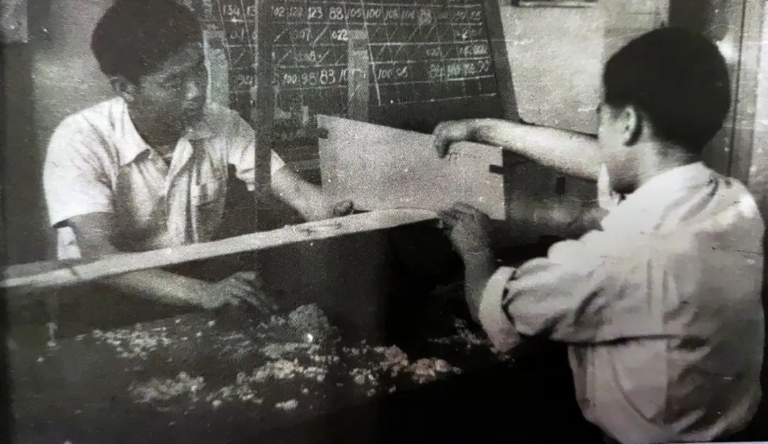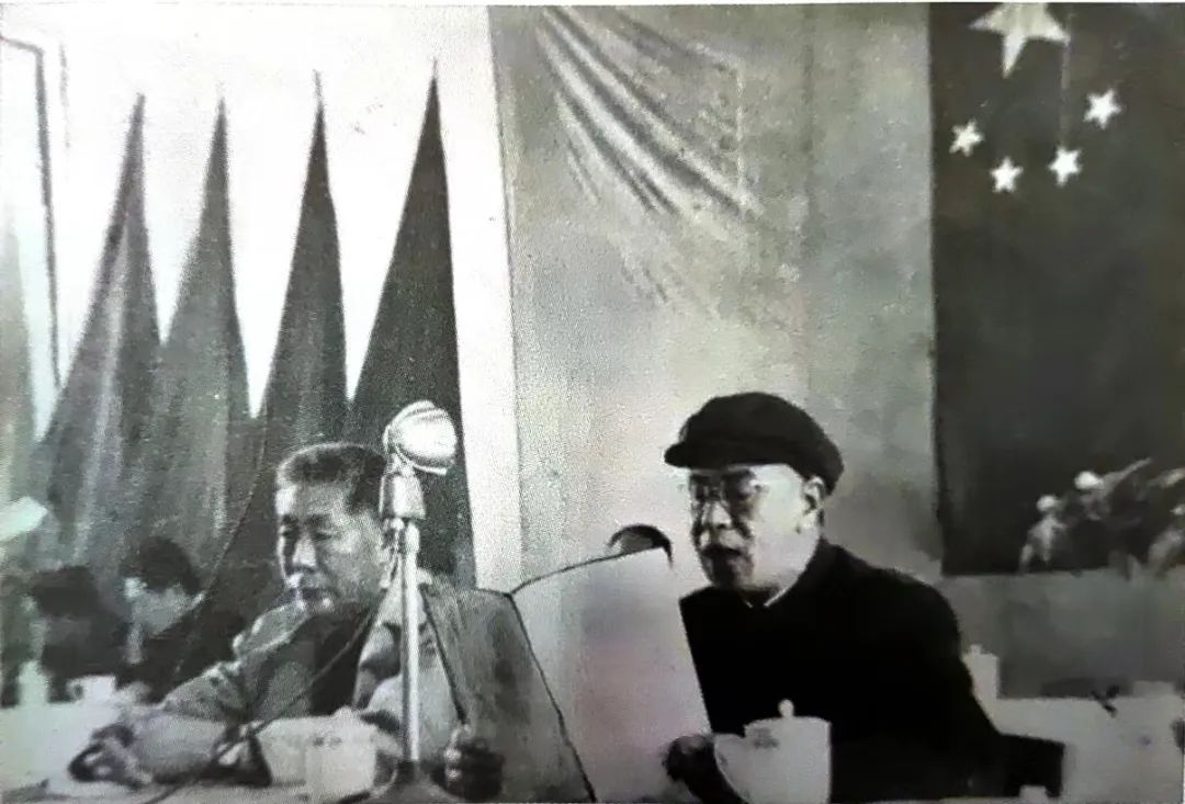 ▲1963年10月11日,惠阳举行第一副木质螺旋桨桨叶定型仪式,国务院航空军工产品定型委员会主任、空军副司令员曹里怀(右)宣读鉴定证书
