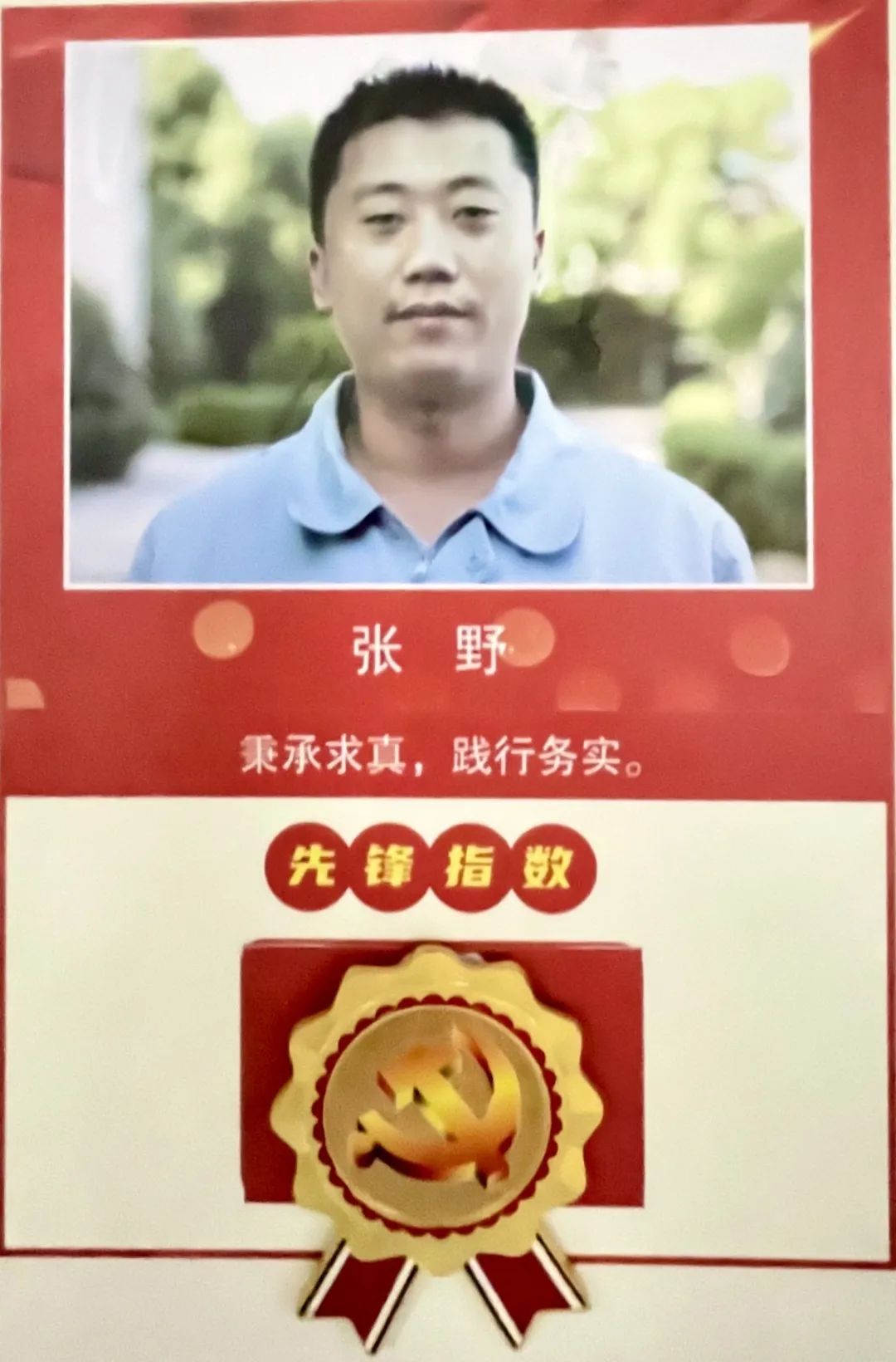 张野同志知道,学习是促进成长最有效的方法,而政治学习是提高觉悟、提升灵魂、提高站位的重要途径。多年来,学思想、悟理论成为他的日常,学习和思考成为他的自觉。在日积月累和潜移默化中,他的政治素养提高了,思想觉悟提升了,政治立场站稳了,入党誓言也就入脑入心了。如果要问党员思想如何永葆初心,张野同志给出了答案---学习学习再学习。