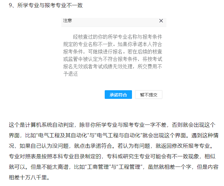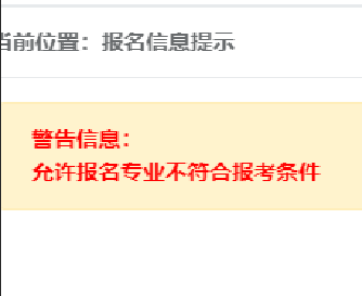 比如,允许报名专业选择的是本专业,报考条件选择的就必须是本专业,不能是相近专业或者其他专业,否则就会出现上面的警告信息。