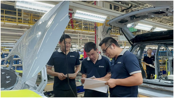 在新车型的导入环节中,工艺员对生产过程控制发挥着重要作用,操作的顺序、工艺参数执行的准确性等方面都直接关系着产品质量的稳定,当刘雄伟、刘挺、黄光普化身总装工艺员后,积极地担任起了这一类似于“医生”的角色,在新车型上线后,核对了包括作业指导书、工具明细表在内十余款文件与实际的一致性,发现了近二十个问题点,并及时进行修正,不仅提升了文件的准确性,同时为上半年的审核工作,贡献出自己的一份力量。