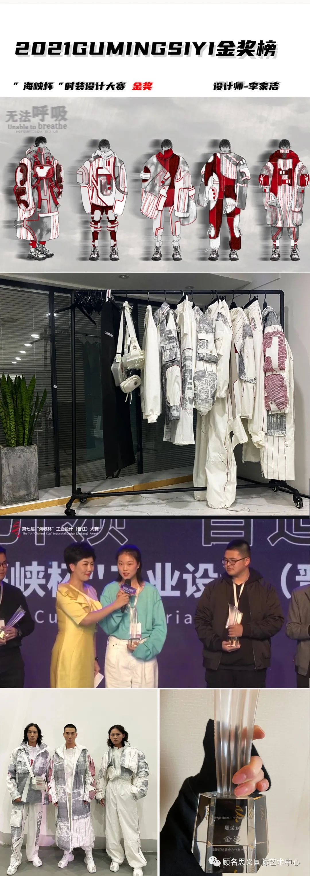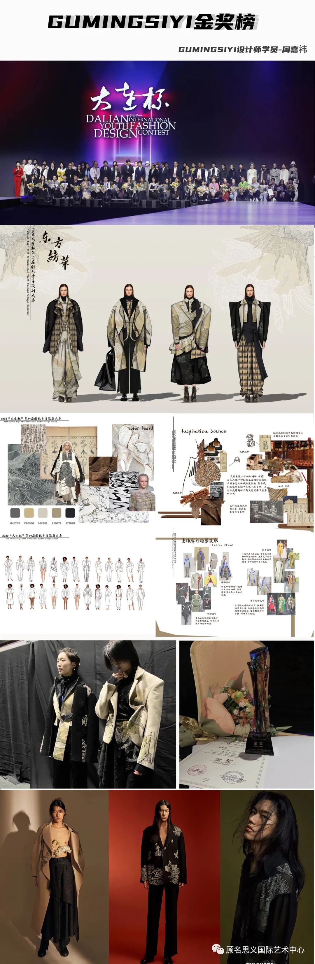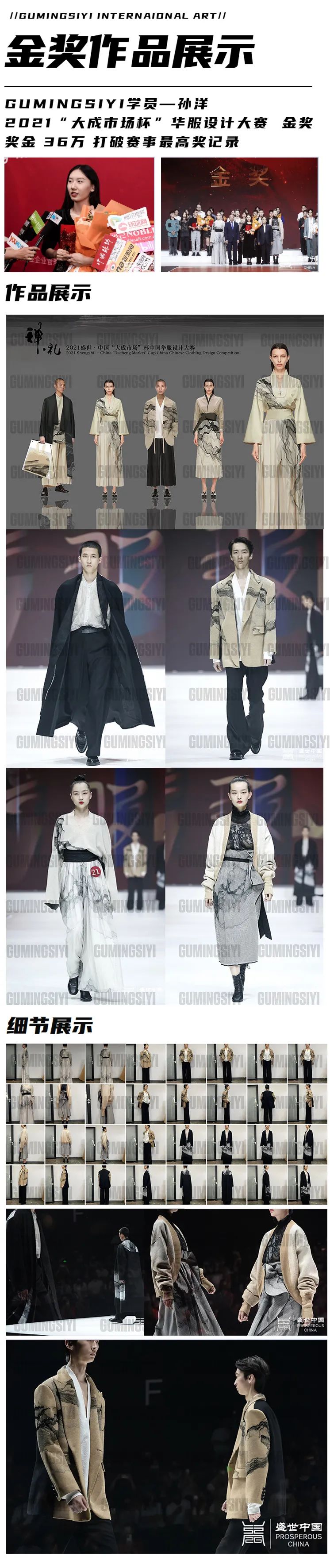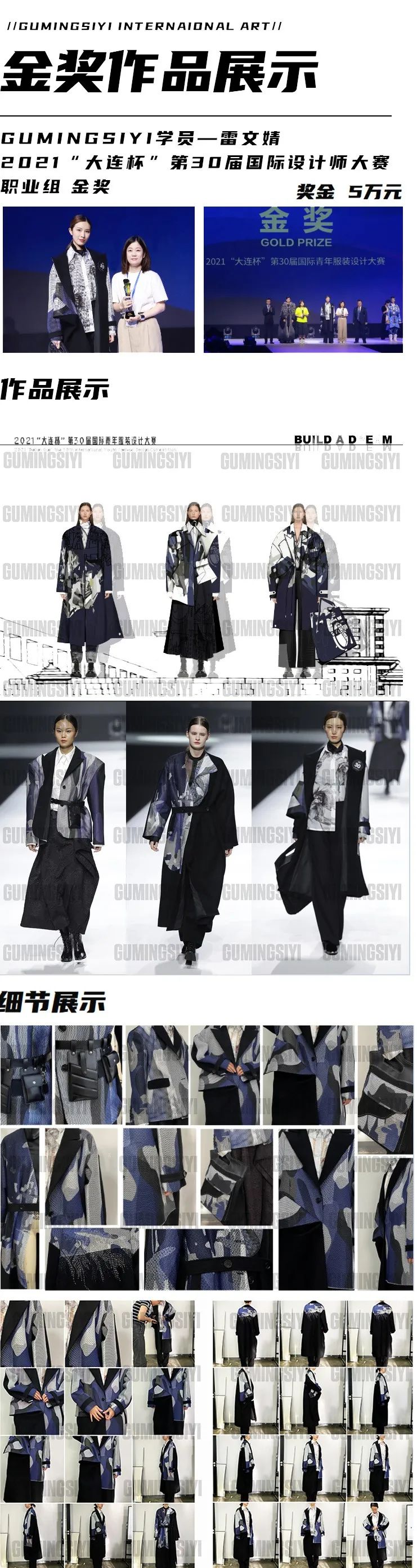 从最开始的设计草图、灵感头脑风暴、面料创新设计、到效果图排版、完整效果图、打印稿件。再到成衣制作、打版、调整样衣、面料创新、再造设计、配饰设计、成衣调整、模特试装等,将比赛的稿件,完善到极致,才能前往决赛,彩排、答辩,决赛走秀、颁奖、等等。一次大赛让你经历了整个大学四年要做学的设计过程,比赛的种类也多种多样,但无论是考研作品集、留学作品集、服装设计大赛、毕业设计的不同要求,还是内衣、成衣、针织的不同品类工艺,GUMINGSYI能做的都不仅仅是添砖加瓦,而是为服装之路上的你,保驾护航。