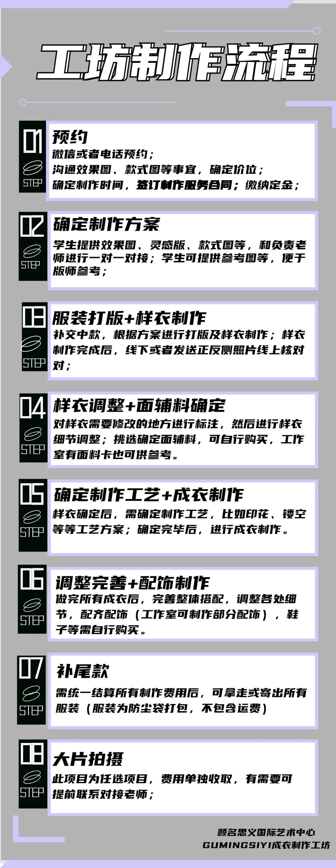 GUMINGSIYI成衣制作工坊配备的硬件设施完善、优质外贸面料供应商,高档皮料机、印花机、压烫机、针织横机等等一应俱全。凡预约成衣制作者,均享有免费作品制作指导、工艺制作方案及各项机器便捷使用。指导老师会根据每套成衣的不同工艺要求,给出工艺指导意见,完善的硬件设施绝对满足你对服装工艺的任何要求!
