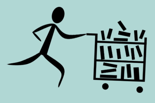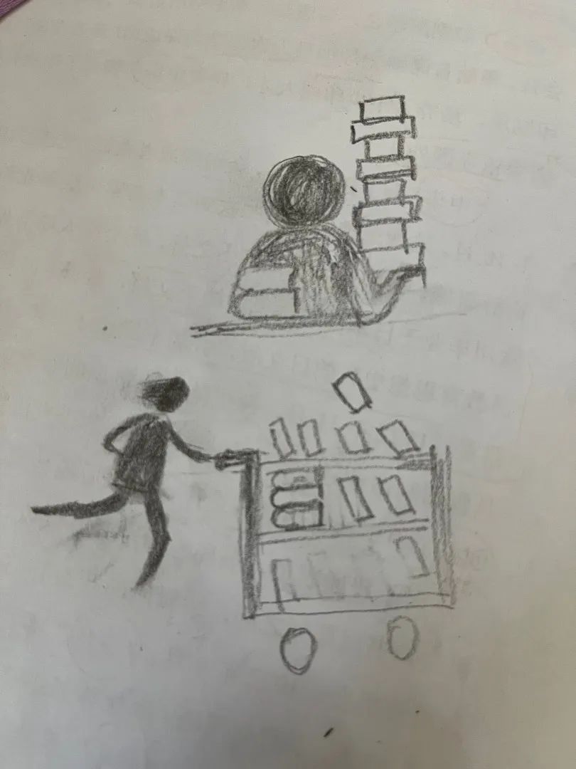 邓咏秋用ps画的图书馆员,正推着书车,行走如飞