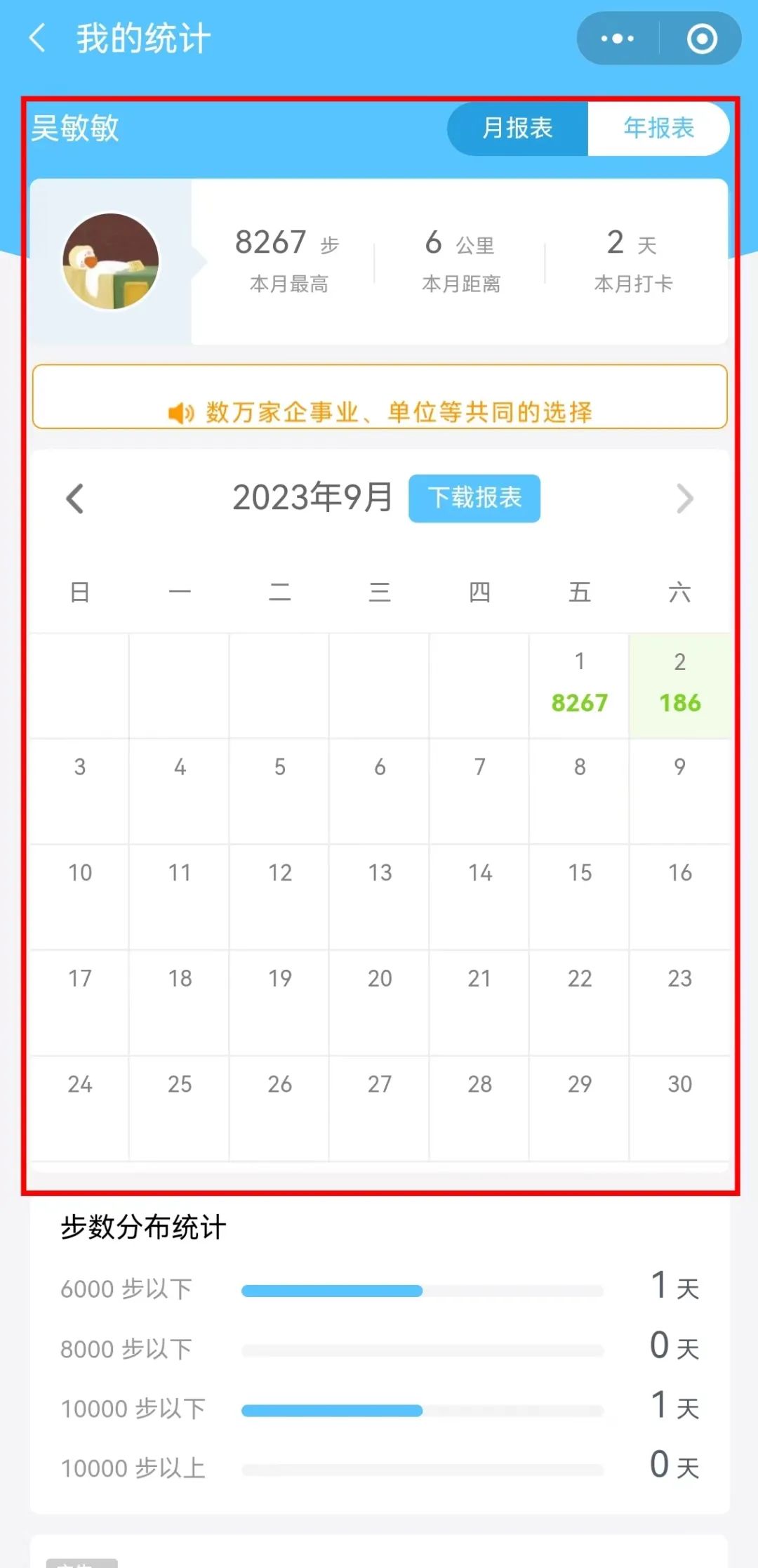 2、活动形式。本次“喜迎亚运 ·你我同行”教师节“云健身”活动要求每一位参与教职工必须要在活动期间(9.4-9.10)内完成3万步数,并在活动结束后将累计步数截图上传才可领取礼品。