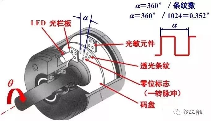 (2)绝对式编码器输出二进制编码,增量式编码器输出脉冲。