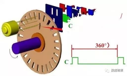 在码盘里圈,还有一条狭缝C,每转能产生一个脉冲,该脉冲信号又称“一转信号”或零标志脉冲,作为测量的起始基准。