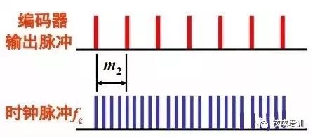 编码器每转产生N 个脉冲,用已知频率fc作为时钟,填充到编码器输出的两个相邻脉冲之间的脉冲数为m2,则转速(r/min)为:n = 60fc / (Nm2)