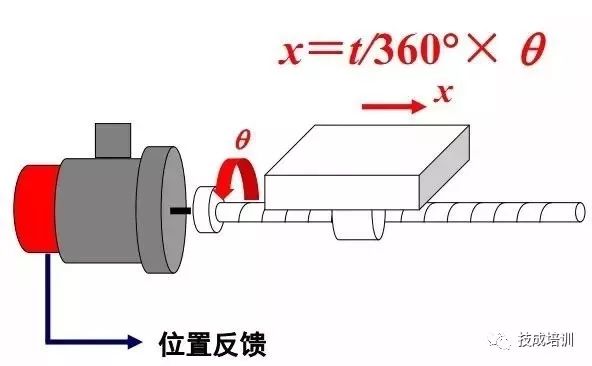 通过测量滚珠丝杠的角位移q,间接获得工作台的直线位移x,构成位置半闭环伺服系统。