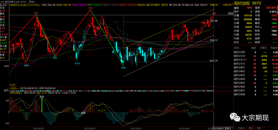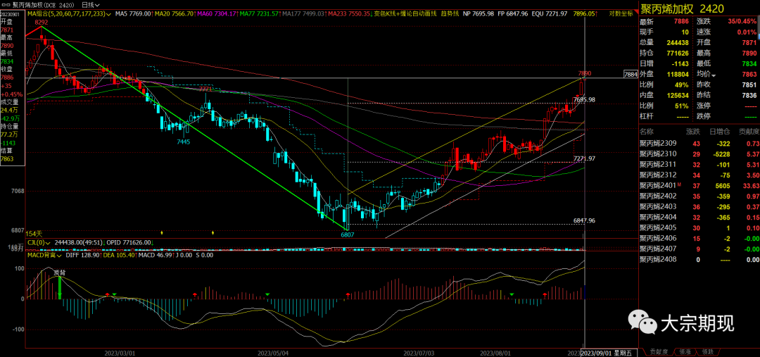 聚酯:重回上涨通道后延续上涨,MEG弱于PT,但A;