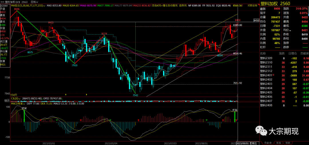 塑化:上涨通道中触碰下沿后强势上涨,延续上涨趋势;