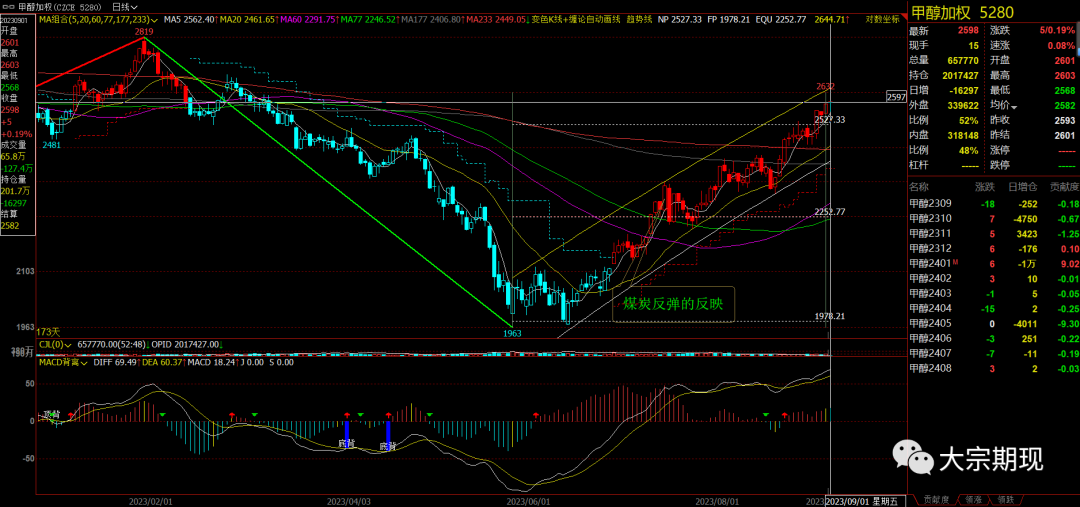 甲醇:上涨通道中触碰下沿后强势上涨,延续上涨趋势;