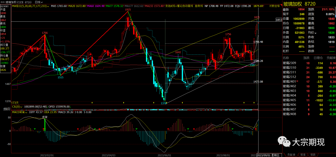 纯碱玻璃:触及短期高位、回落后继续延续强势上涨,玻璃表现更强。