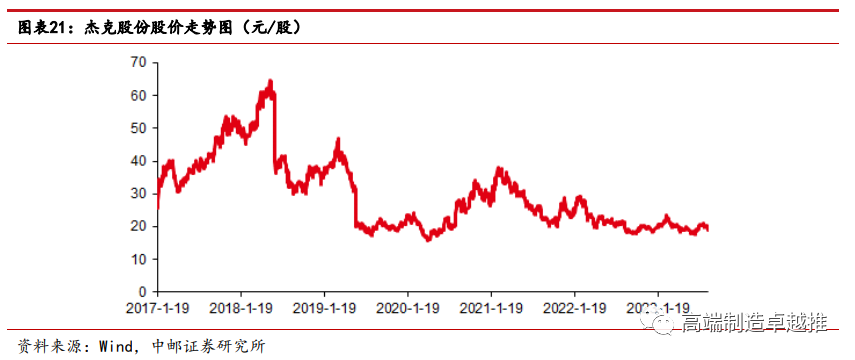 二级市场股价往往先于基本面见顶,建议逢低布局优质企业。从上工申贝、标准股份、*ST中捷三家企业的股价走势图中可以看出,股价于2016年中起涨,于2017年年初见顶,但是从周期角度而言,2017年工业缝纫机产量/内销量增速见顶,2018年产量/内销量见顶。从杰克股份的股价走势图中可以看出,2020上半年起涨,2021年初公司股价达到阶段性高点,但是从周期角度而言,2021年工业缝纫机产量及增速/内销量及增速才见顶。