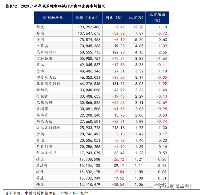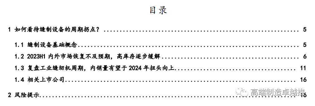 本文主要观点摘自《【中邮机械丨深度】缝制设备专题:如何看待缝制设备的周期拐点?》丨发布时间2023年9月3日丨发布报告机构:中邮证券研究所丨报告作者:刘卓S1340522110001;联系人:陈基赟S1340123010003