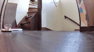 赶紧把玩具从二楼叼到一楼去躲起来。