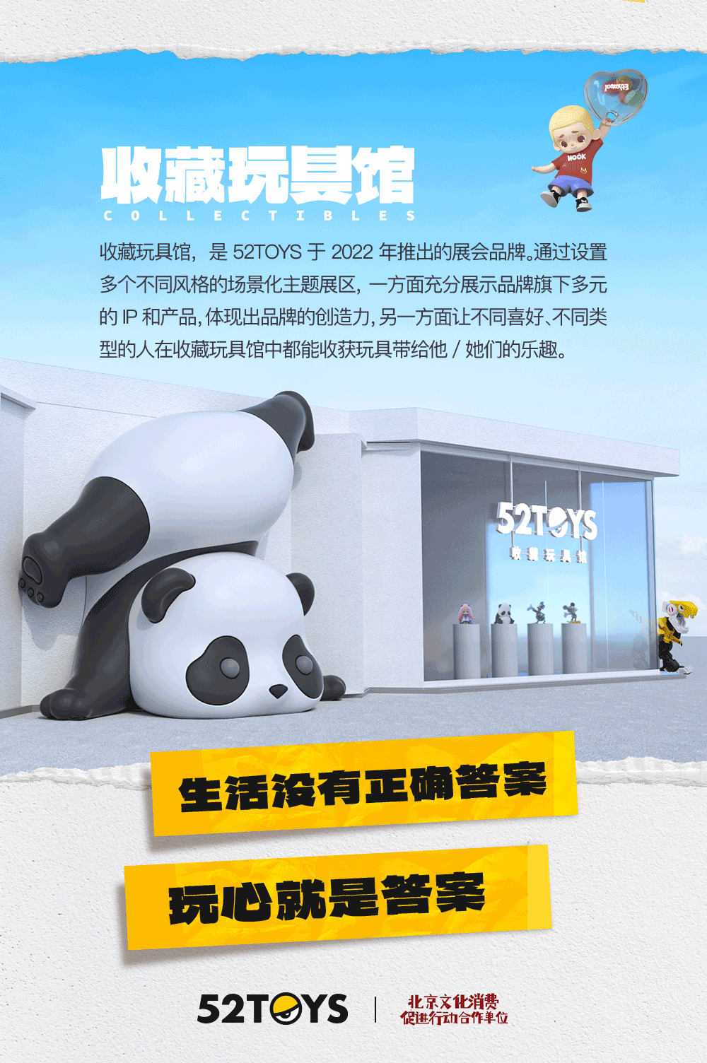 第十一届北京惠民文化消费季以“文荟北京 质惠生活”为主题,搭建自主品牌活动引领、大型主体活动贯穿、市场协同活动支撑、重点领域区域驱动的活动体系,聚焦文创京城、书香京城、艺术京城、演艺京城、娱游京城、酷玩京城六大领域,营造吸引不同年龄圈层、不同偏好人群共同参与的浓郁文化消费氛围。“52TOYS收藏玩具馆”作为第十一届北京惠民文化消费季酷玩京城版块的重要活动之一,将于9月2日-9月19日在三里屯太古里南区举办,超多潮流玩具等你来探索,快来这里收获快乐吧!