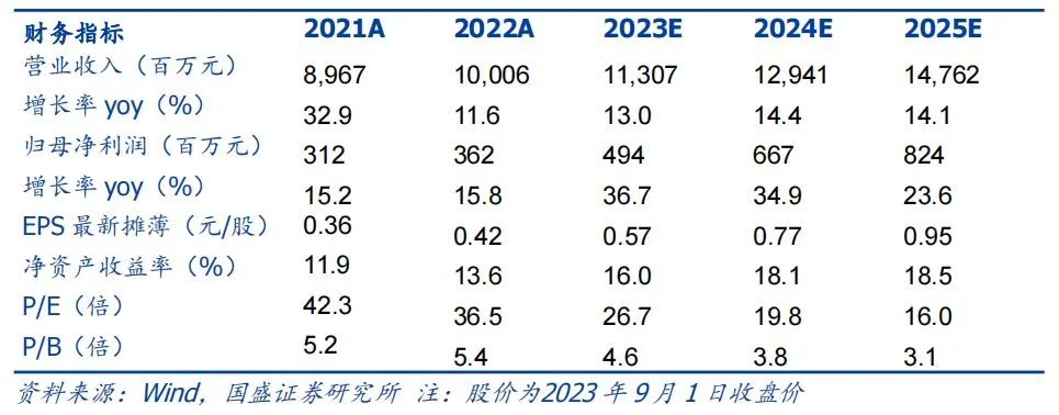 盈利预测:考虑今年消费复苏节奏及公司自身经营韧性,我们小幅度调整盈利预测,我们预计2023-2025年收入113.1/129.4/147.6亿元(前值117.6/131.9/146.1亿元),同比+13.0%/+14.4%/+14.1%,归母净利润4.9/6.7/8.2亿元(前值5.1/6.3/7.4亿元),同比+37%/+35%/+24%,对应PE 27/20/16倍,维持“增持”评级。