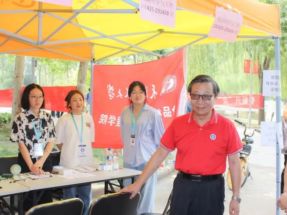 报到期间,天津科技大学党委书记韩金玉、党委副书记兼校长路福平、党委副书记安玉健、党委常委兼副校长高发明、学工处领导、保卫处领导、后勤处领导以及食品科学与工程学院多位领导老师莅临现场指导工作。领导们询问了新生报到情况并对于新生的行程进行了关心慰问,同时对下一步工作的开展进行了讨论并作出指示。此外,领导老师们与学生们一同品尝了食品学院学子手工制作的曲奇,展现了食品学院的特色。