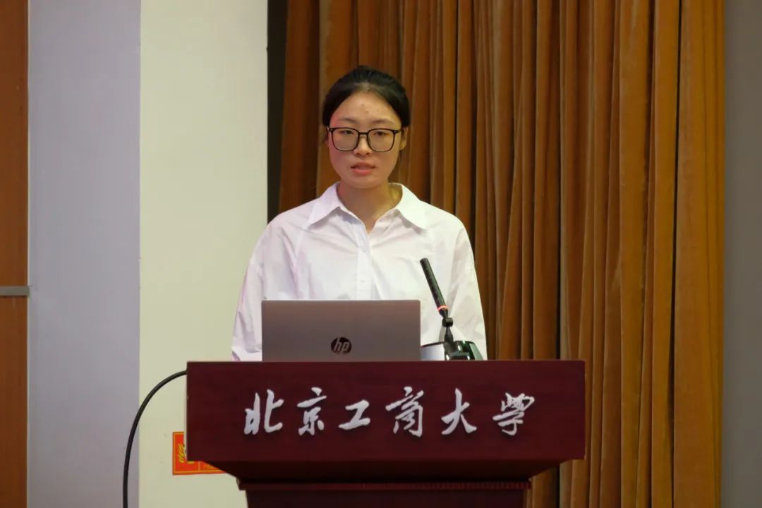食科212班于茜作为在校生代表发言。她以学姐的身份分享了大学生活、学习、科研、竞赛、志愿服务以及实践等各方面的丰富经验和感受。建议新生们计划好大学时期的目标,积极探索自己的学术方向,体验多姿多彩的大学生活。于茜表示,良师益友、情理兼修、砥砺奋斗是她在北工商的收获,也是北工商给予她的底气。她号召新生们珍惜时间,热爱生活,将青春与汗水挥洒在追求真理的求索中;勤奋阅读,积极探索,将理想和事业播种在北工商这片热土上。