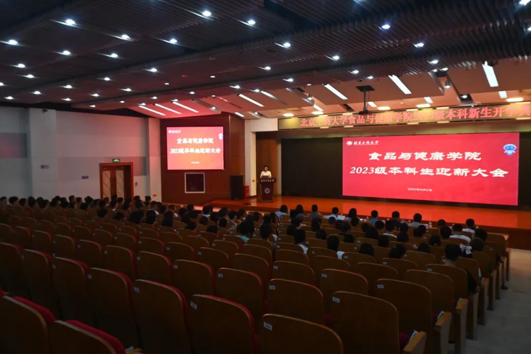 9月2日下午,食品与健康学院2023级本科生迎新见面会在良乡主校区B报告厅隆重举行。学院党委书记胡燕霞,院长王彦波,副院长刘野、王蓓,食品科学与工程系主任肖俊松,食品质量与安全系主任熊科,新生班主任梁杉、王颖、张婵、张月美,2022级本科生辅导员揣清新以及全体2023级本科新生参加了迎新大会。大会由学院党委副书记单静敏主持。