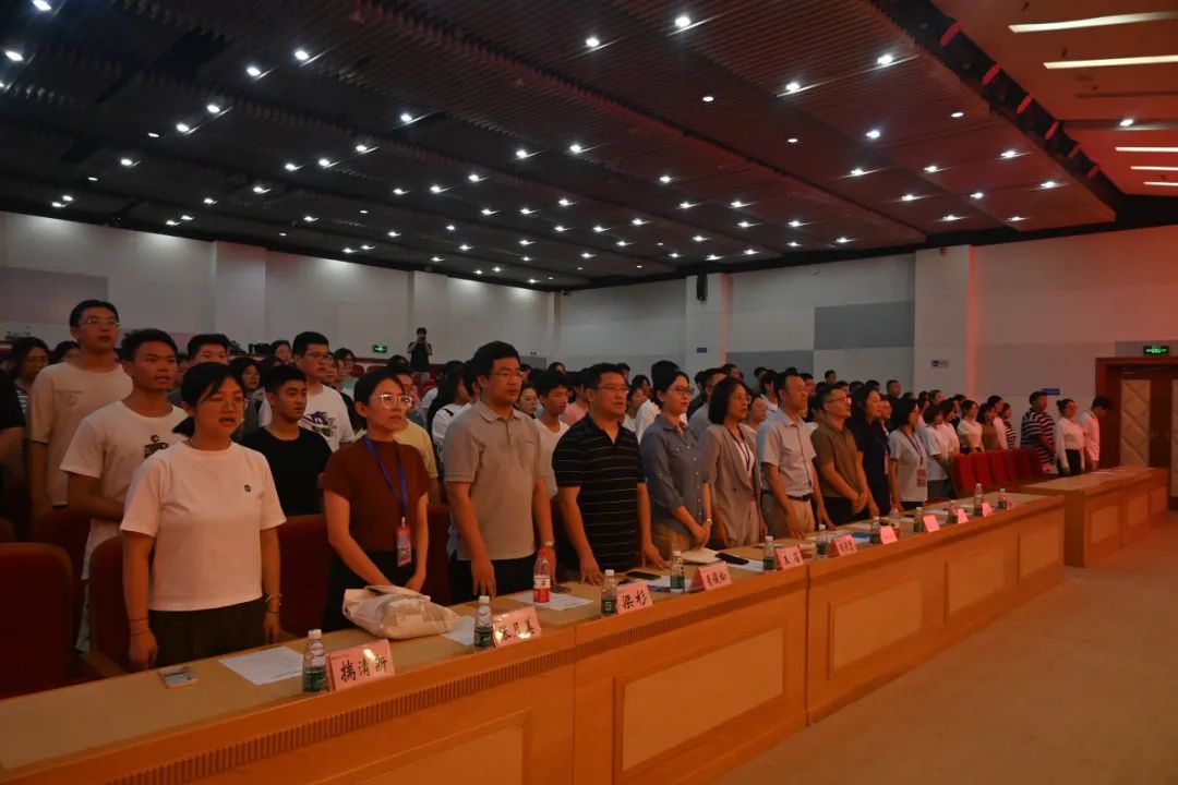 在庄严的国歌声中,迎新见面会正式开始。