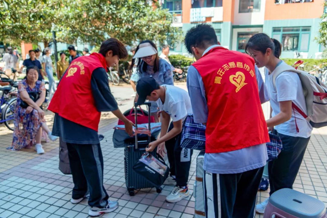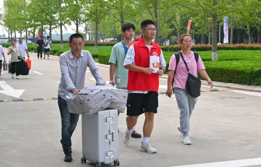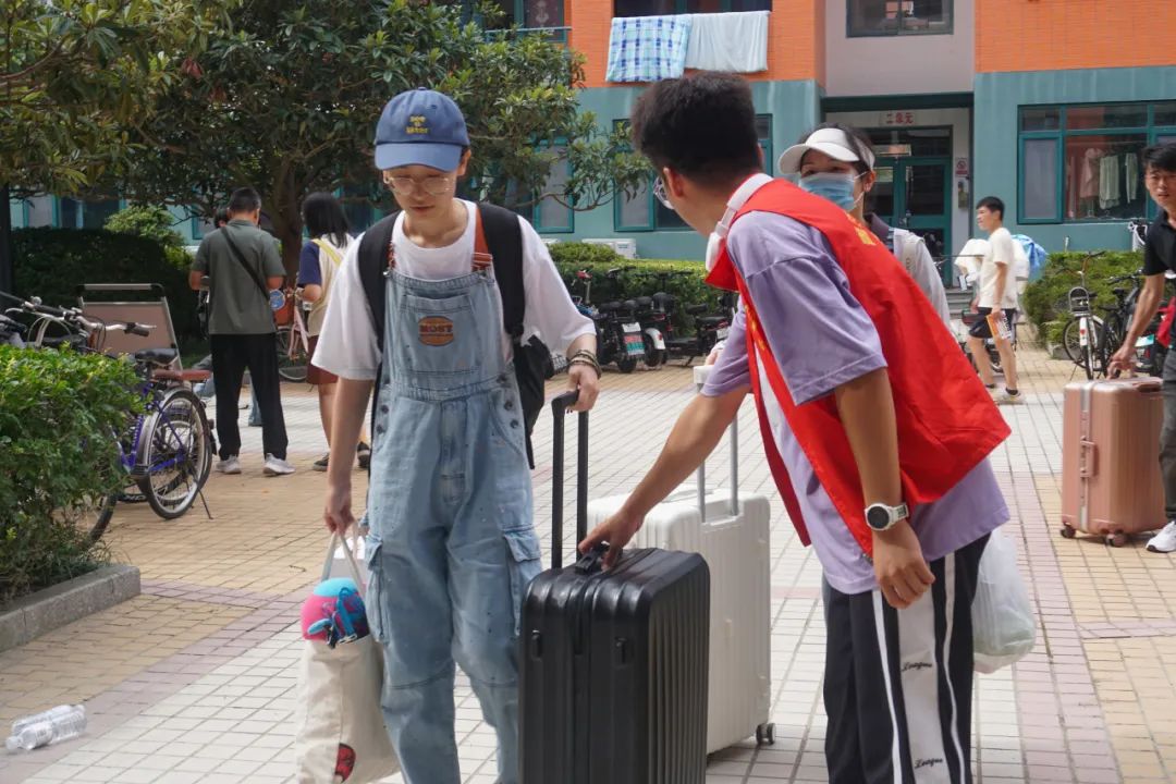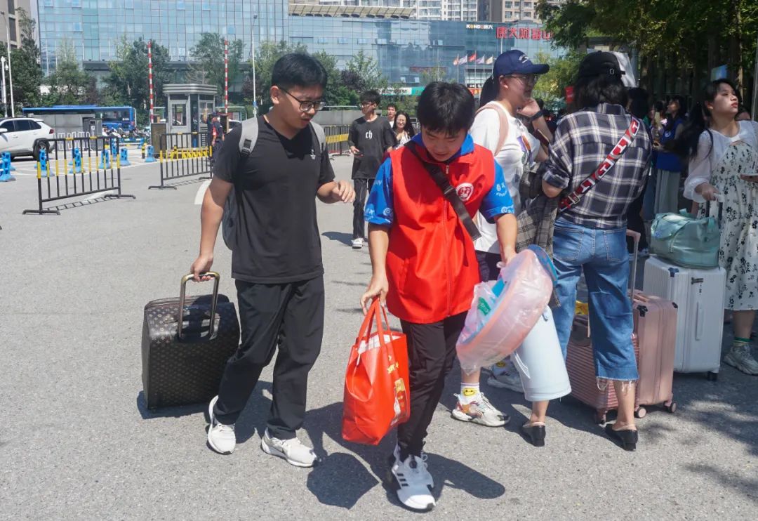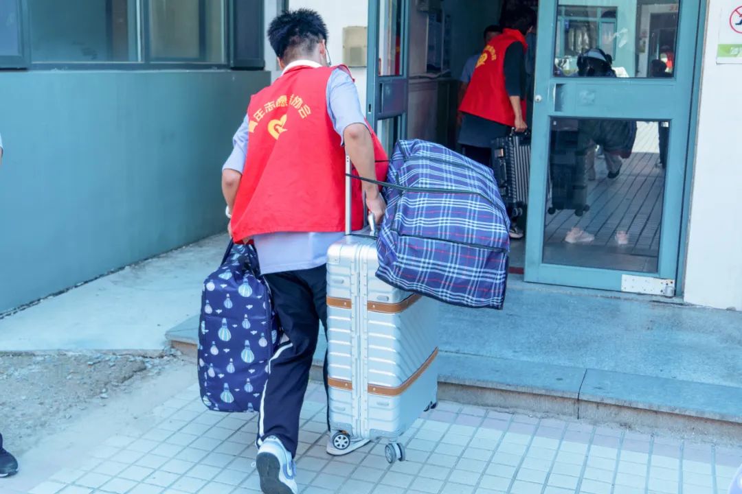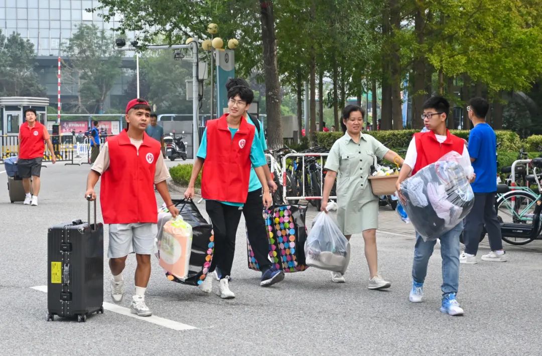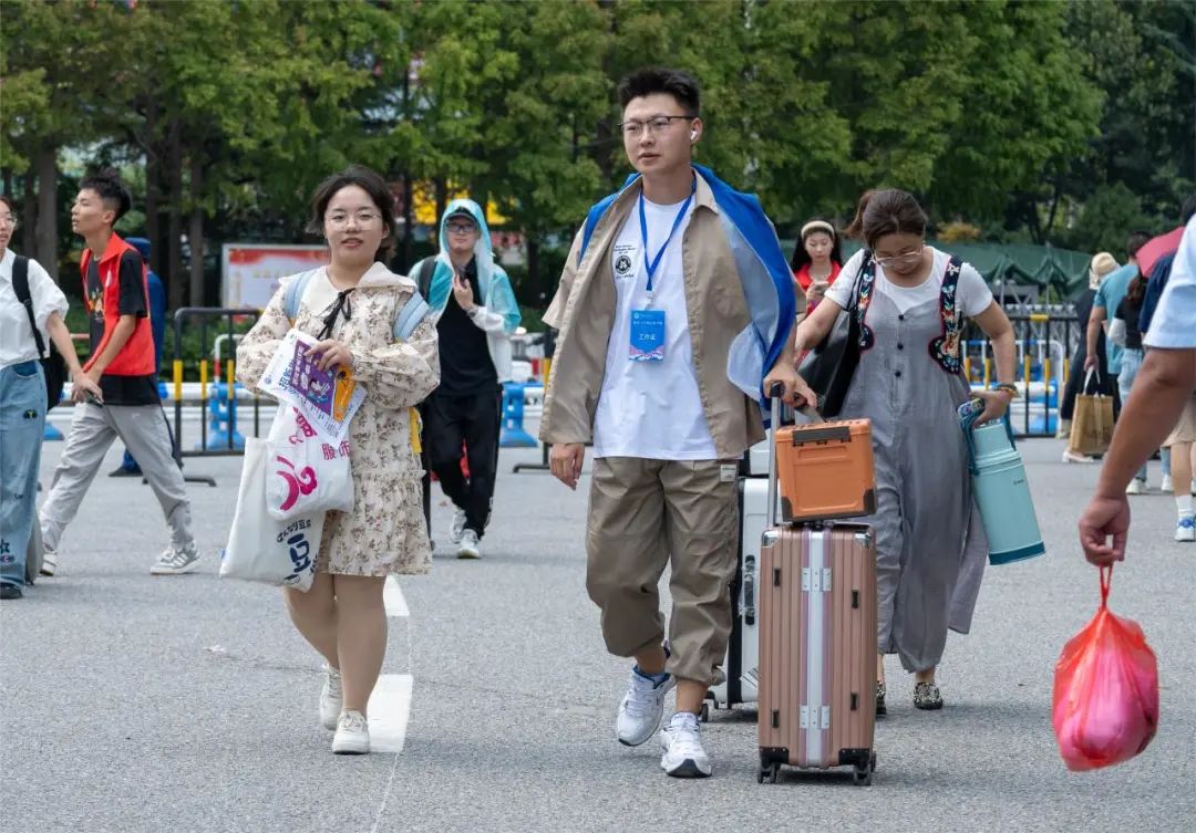 新生们拖着沉甸甸的行李