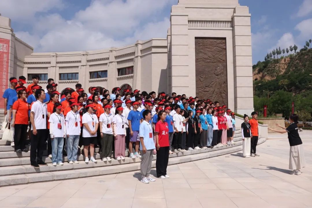 参观结束后,全体实践队员共同合唱了《黄河大合唱》,歌声铿锵有力,响彻整个纪念馆广场。队员们通过歌唱回顾那段峥嵘岁月和延安革命文艺传统,深入思考红色经典作品的价值,从红色经典作品中学习党史,汲取信仰的力量。