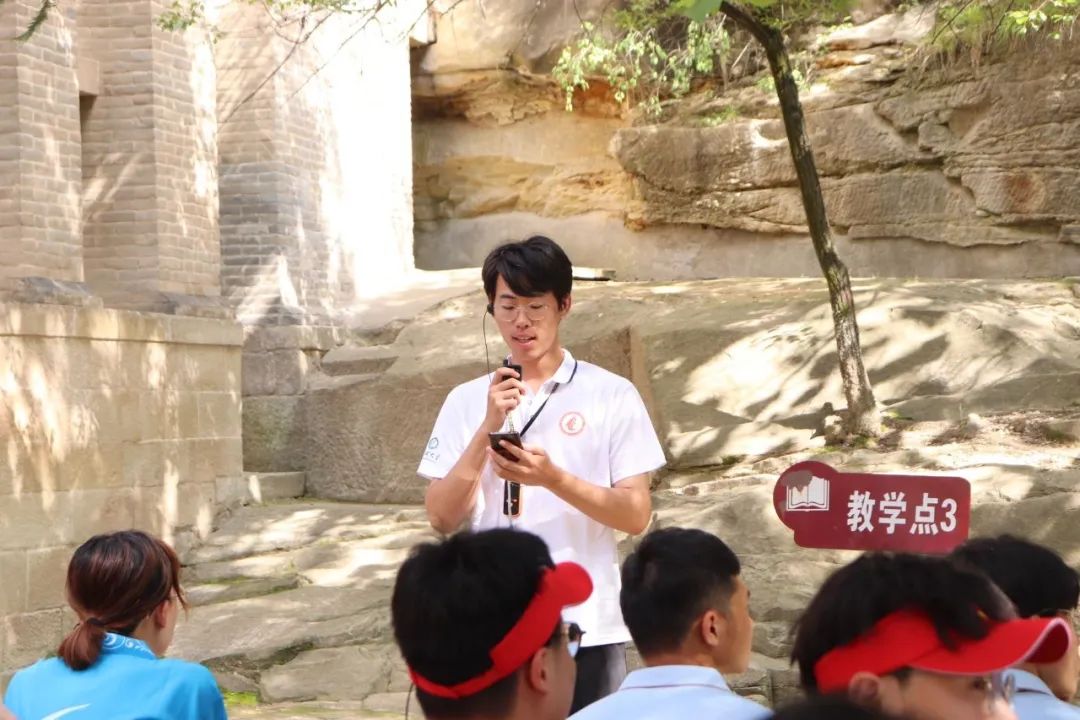 授课结束后,聊城大学化学化工学院探忆·筑梦实践队队员褚渤凯分享了学习感悟,他表示,我们要深入学习了解红色精神,在自己的领域不断努力深挖,做探索时代先锋,不惧挑战,向着党的二十大提出的总目标不断前进,经此一行,更加坚定革命信仰、发扬优良作风,将党的优秀红色精神传承下去。