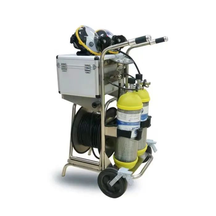 当消防员进入有烟雾、毒气、粉尘、缺氧的深井中执行救援任务时,常见的呼吸保护装备由于受到空间狭窄、气瓶容量有限等因素的限制,可能会使消防员在救援行动中受到制约。而使用时间长、行动灵活方便、佩戴者负重小的长管空气呼吸器便成为了消防员执行该类任务时经常用到的呼吸保护装备。