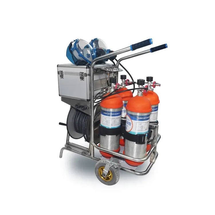 长管空气呼吸器适用于需较长时间作业的特殊固定场所和进入狭窄空间,但其作业活动范围受到管长的限制。此外,长管在长距离移动过程中,可能会被意料之外的尖锐器物戳破,或被腐蚀性介质腐蚀,或更可能与地面长期摩擦而刮伤。为减少这些安全隐患,可通过外加一个或多个应急气瓶,当出现供气不足等情况时,消防员可及时切换气源撤离工作现场。