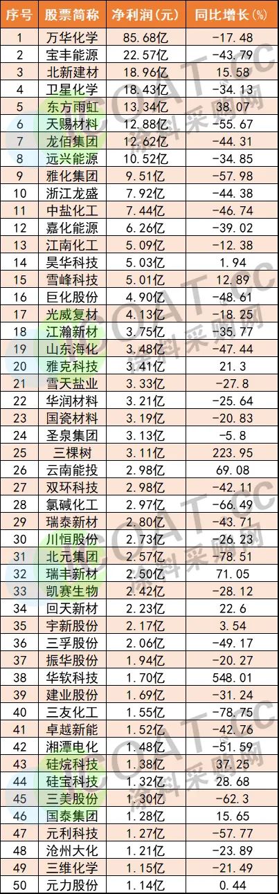 化工净利TOP50强揭秘!