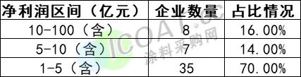 据不完全统计,在净利润50强中,在10亿-100亿(含)区间的有8家企业,占比16%;5-10亿(含)的企业有7家,占比高达14%;1-5亿(含)的企业有35家,占比高达70%。化工行业50强2023年上半年净利润普遍在5亿(含)以下,高达7成,本次净利TOP50强上榜门槛为1.14亿元。