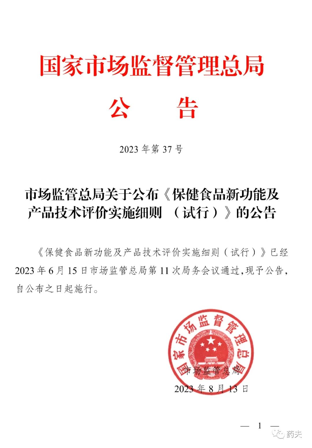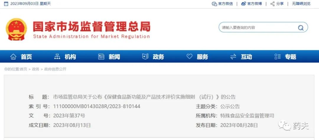 《保健食品新功能及产品技术评价实施细则(试行)》已经2023年6月15日市场监管总局第11次局务会议通过,现予公告,自公布之日起施行。