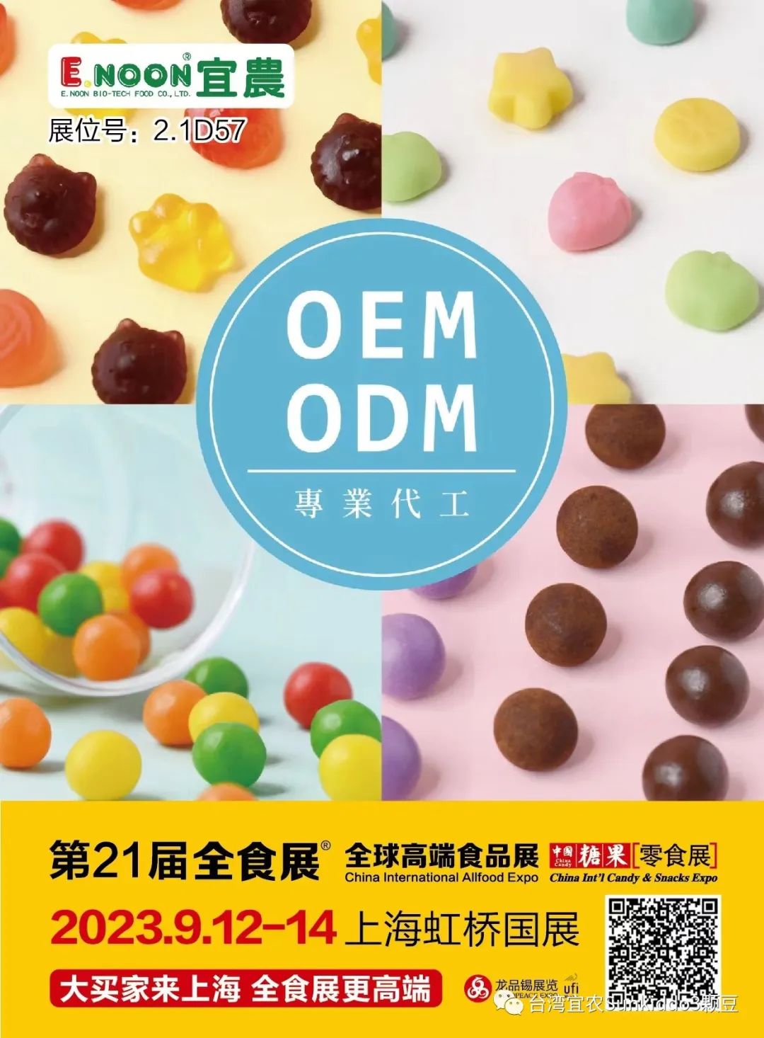 臺灣宜農生物科技食品集團成立於1987年,為專業保健食品製造代工廠,目前除了生產的營養保健類脆皮軟糖、錠片、牛奶軟鈣糖等逾數百種產品,更不斷跨業整合,為客戶生產各類可口、營養的產品。宜農不但以OEM、ODM為主要生產形式,更推出自有品牌“宜農(Enoon)”及“Sunkiddo 3顆豆”,以活潑、可愛的包裝充份展現傳遞健康快樂正能量的品牌宣言,產品目前已行銷世界40多個國家,遍及亞洲、歐洲、美國、澳洲、俄羅斯等地區,包括迪士尼、Hello-Kitty等國際知名大品牌皆由宜農公司代工。除此之外,宜農公司不但通過“中國大陸商檢三證”,更通過各項國際認證,取得SGS公司評鑒ISO 22000、HACCP國際食品安全認證,借著這些優勢,成功暢銷全世界。主要產品、品牌:宜農(Enoon)”及“Sunkiddo 3顆豆SunKiddo:羊乳片、牛乳片、Nine Plus+9好糖。ENOON:天然風味系列-水果QQ系列,貓掌QQ,Berry Mix 脆皮軟糖,Juicy Mix 脆皮軟糖,巴黎戀人絮語-法式甜蜜脆皮軟糖系列,臺灣水果箱QQ軟糖,平安發財蘋果禮盒,金元兒寶造型綜合糖,祈福天燈綜合糖果禮盒,喜糖系列。糖果代工:營養保健類脆皮軟糖,巧克力脆皮軟糖,脆皮軟心糖,QQ軟糖,無糖QQ軟糖,素食軟糖,無糖素食軟糖,果膠軟糖,軟綿糖,錠片,牛奶糖,羊奶糖,脆皮牛奶糖,喉糖,硬糖…等。
