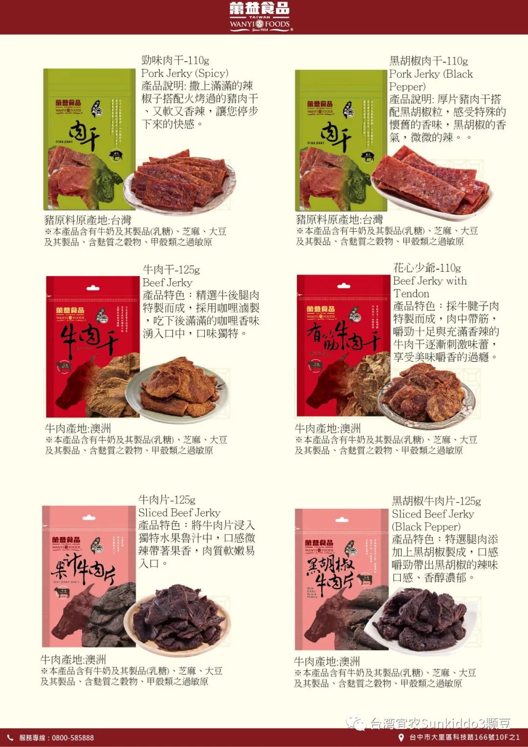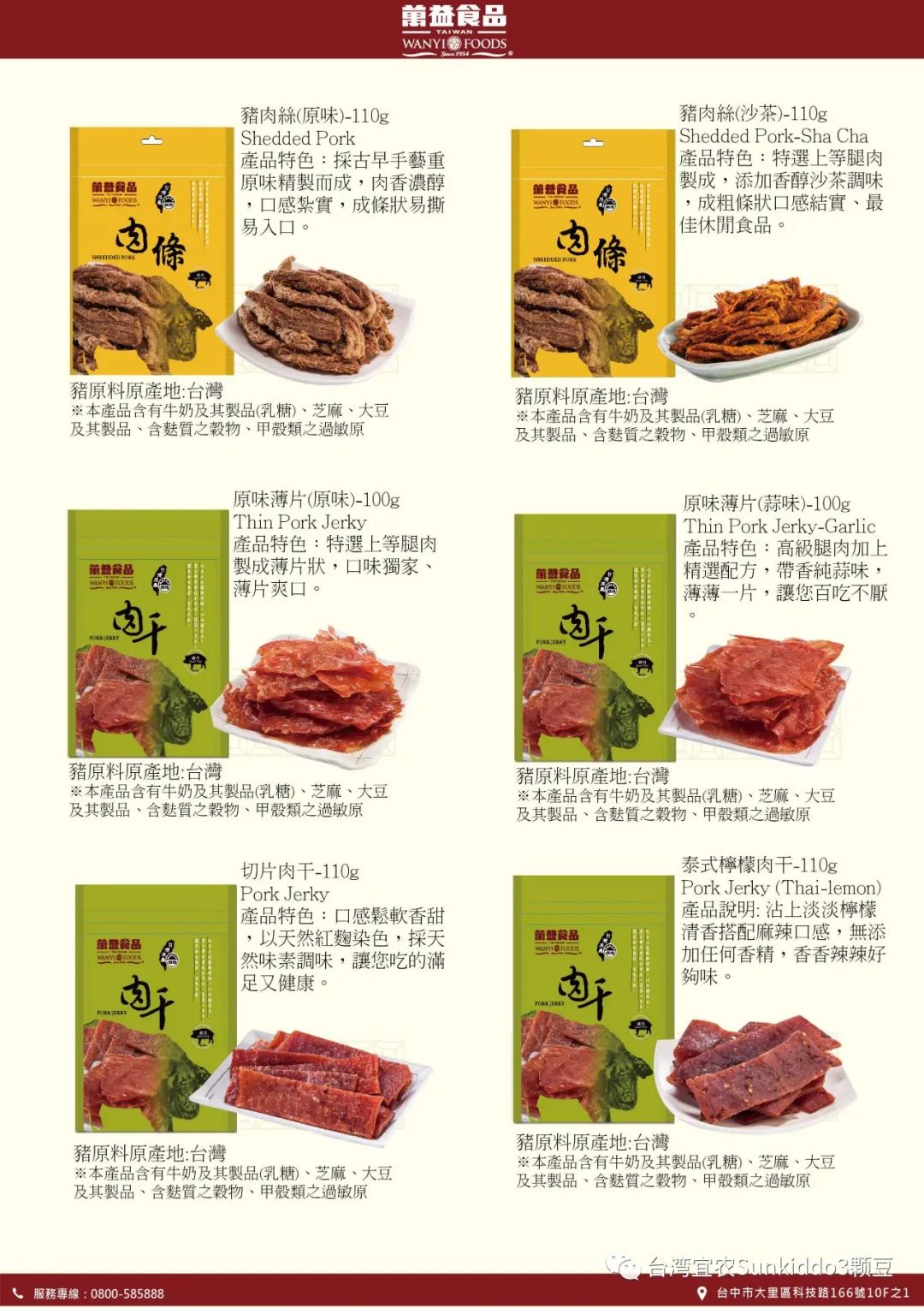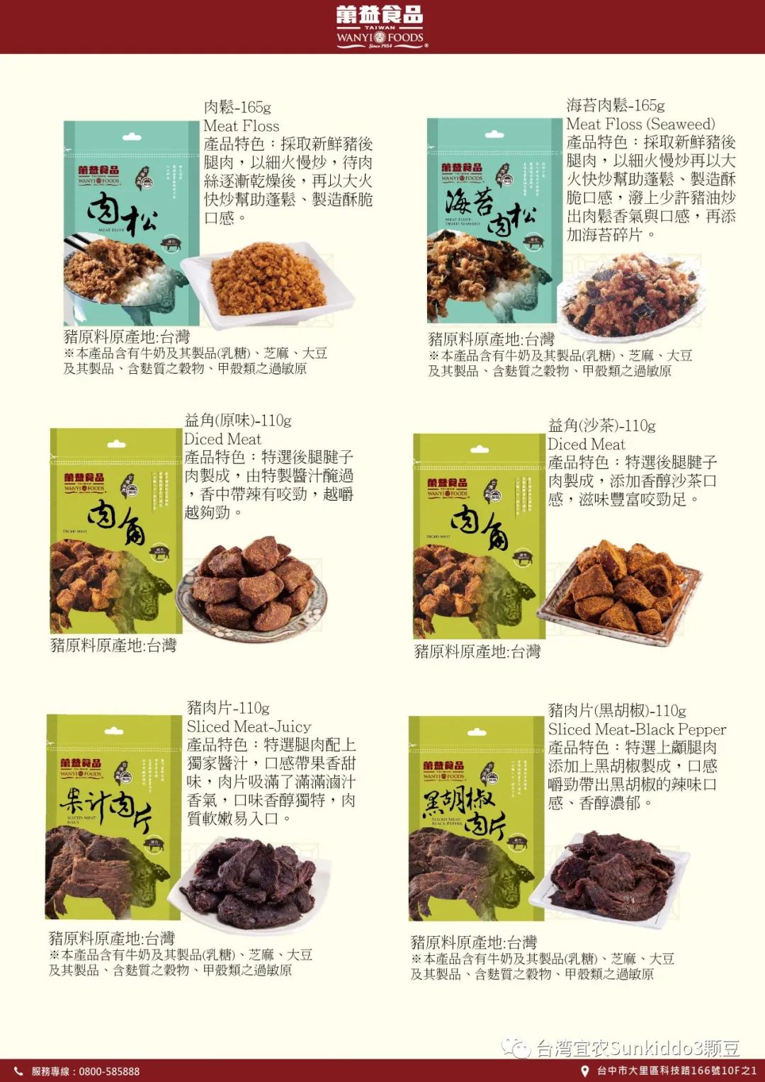 weii@hibox.hinet.net網站: https://www.wei-i.com.tw禎香食品有限公司系一家生產與銷售為一體的企業,占地40畝,現有廠房與宿舍等近35000平方,以生產肉製品、魚製品為主,公司曾多次獲得"誠信企業"稱號,公司產品主要以"禎獎"牌系列肉製品、魚製品在國內市場及東南亞地區銷售深得廣大消費者的認可。現主要產品有:牛肉乾,豬肉乾,豬肉脯,兒童肉鬆、魚鬆,預製調理菜品,預製健康營養湯品等產品,憑著精確的市場行銷策略,形成以大型國內外連鎖超市如:OLE、聯華、永輝、新華都、大潤發、物美、華潤、盒馬等等商超及全國流通市場的銷售網路,產品行銷全國二十多個省市。
