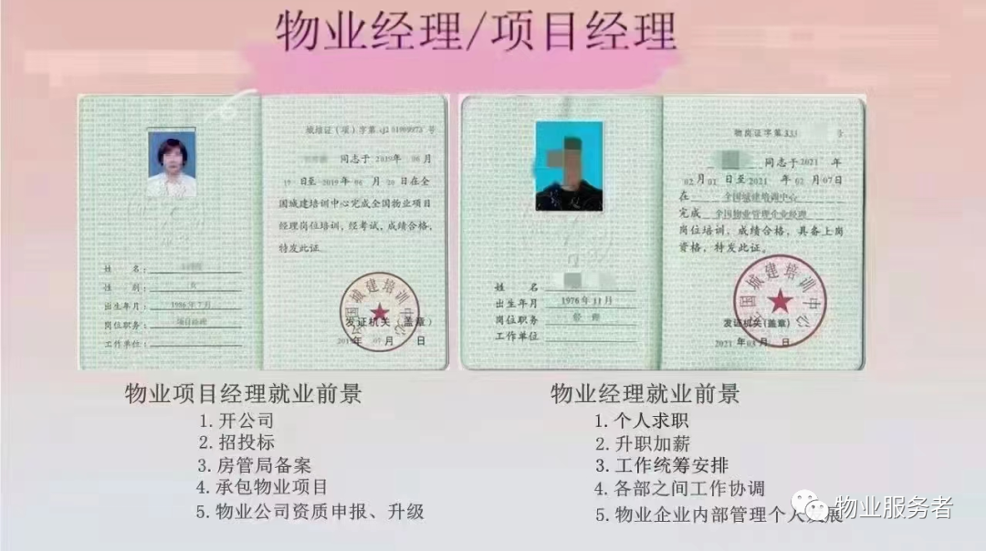物业经理证,物业项目经理证等,目前物业方面最权威的发证部门,隶属住建部