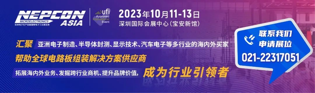 点击【阅读原文】,进行NEPCON ASIA 2023参观预登记,了解更多新材料、新设备、新技术及新应用解决方案!