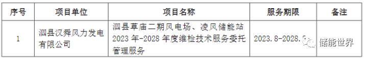 8月31日,国家电投五凌电力泗县草庙二期风电场及储能电站2023年-2028年维检技术服务委托管理项目招标。