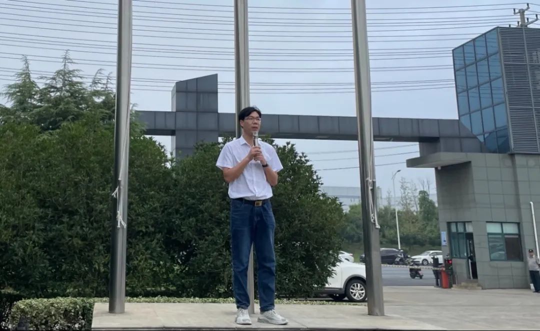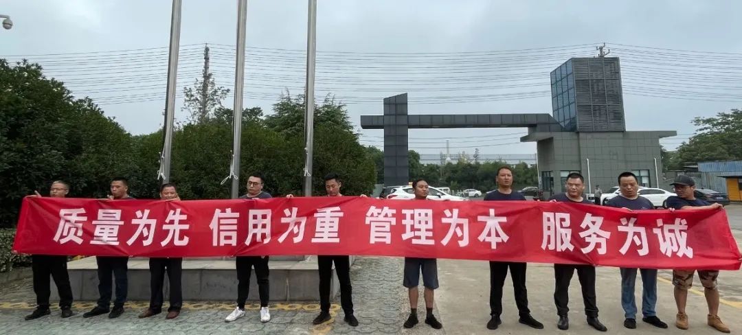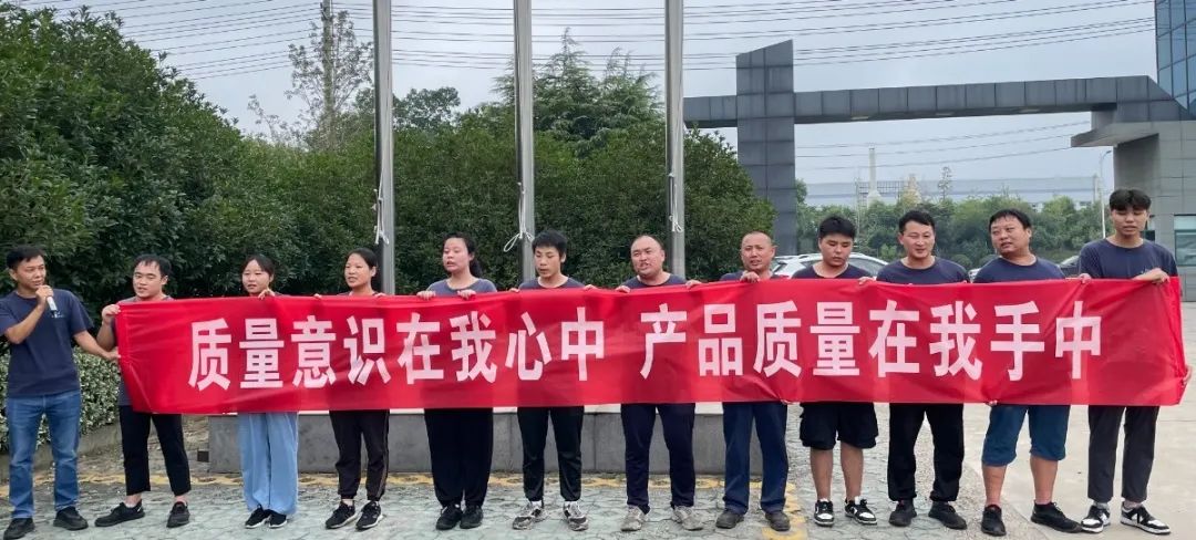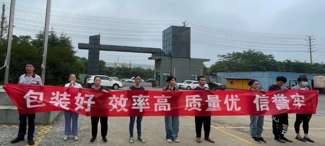 随后,一车间、二车间、染色车间、织造车间、包装车间、制网车间、品质部站在国旗下大声喊出各自的口号,以表决心。