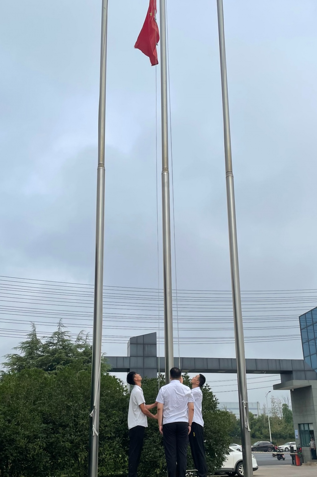 9月4日清晨,凯欧纺织全体员工在广场上参加9月份升国旗仪式,随着激昂的《义勇军进行曲》响起,国旗仪仗队的三名员工迈着铿锵有力的步伐,护送着五星红旗正步走向旗杆,台下员工面向国旗肃立致礼。