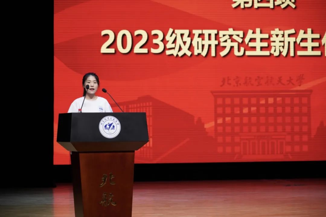 2023级研究生新生代表付慧婷同学对以林士谔先生为代表的老一辈创业者“爱国、创新、奉献”的永恒的“陀螺精神”表达了崇高的敬意,立志厚植家国情怀、锤炼品德修为、练就过硬本领。号召大家为实现永不停息的陀螺梦、空天报国的北航梦和中华民族伟大复兴的中国梦而矢志奋斗。